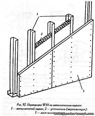 звукоизоляционного слоя, уложенного между листами гипсокартона (рис. 92).